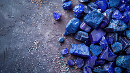 Blue crystal stones background. Blue gemstone texture. Blue crystals background.