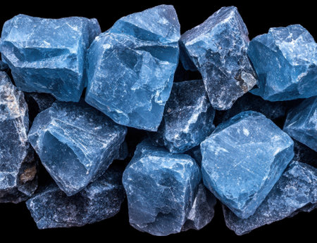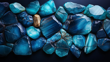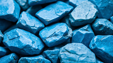 A stunning array of blue rocks, each unique in its hue and shape, gathered together in a mesmerizing display of nature's artistry