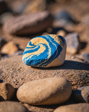 AI Generated. Close up of a blue and yellow rock in a pile of rocks
