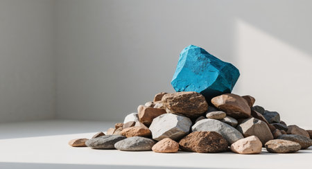 AI Generated. A pile of blue and brown rocks with a blue rock in the middle