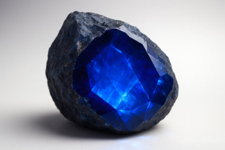 Raw Glowing Sapphire Gemstone on White Background. Gemstone Stock Image High Quality Precious Mineral Jewelry Clipart
