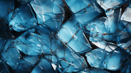 This close up shot showcases beautiful blue crystals with intricate patterns and textures. The crystals glisten under the light, revealing their natural formations and depths.