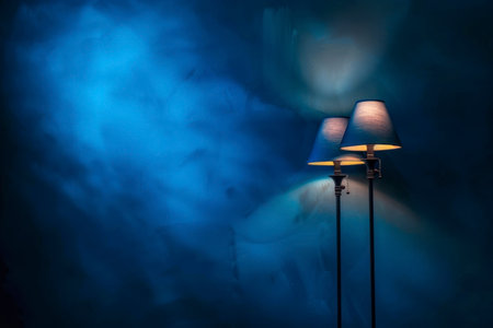 Blue spotlight background with lamps.