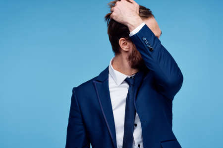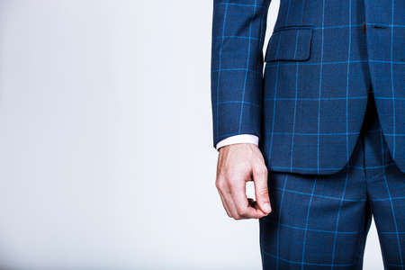 business man in suit cropped view blue background fashion