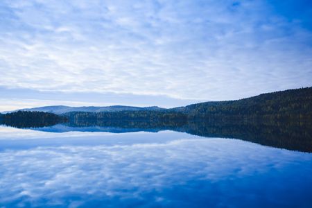 Scenic view of a lake in the blue time after the sunset
