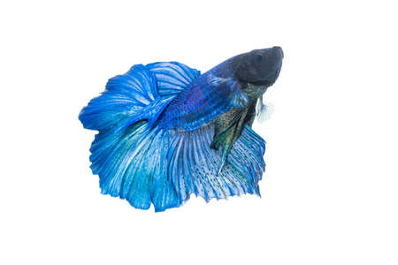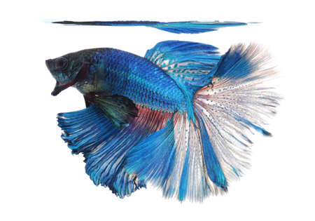 Blue siamese fighting fish, betta splendens isolated on white background