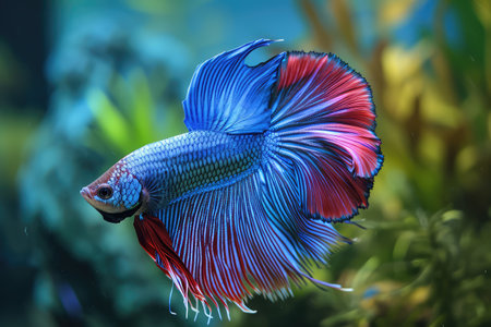 A stunning betta fish glides through the water, showcasing its vibrant colors and flowing fins. This serene underwater scene captures the essence of aquatic beauty.