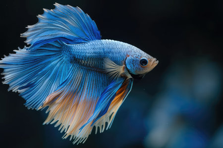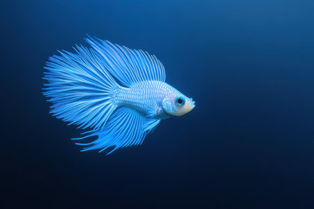Blue betta fish with flowing fins, elegant aquatic animal in motion, dramatic lighting, graceful underwater beauty