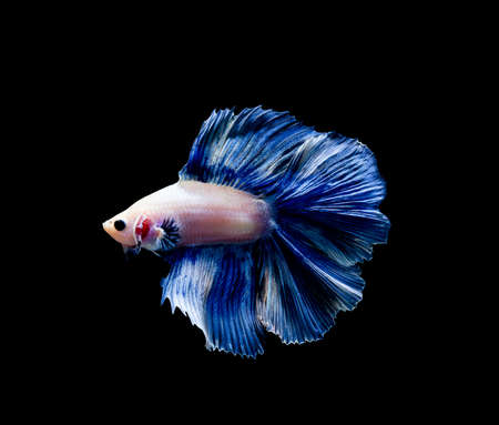 Capture the moving moment of blue siamese fighting fish isolated on black background. betta fish.
