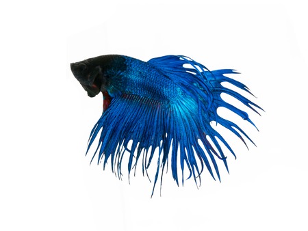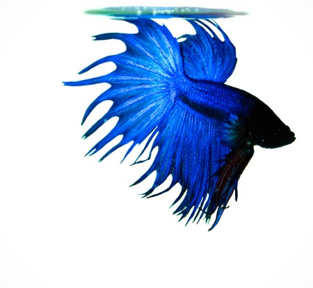 blue crowntail siamese fighting fish on white background