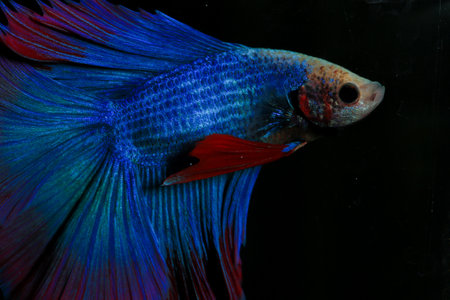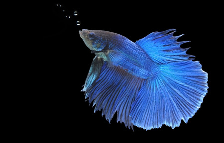 Blue and black Thai siamese fighting fish, betta splendens, isolated on black background