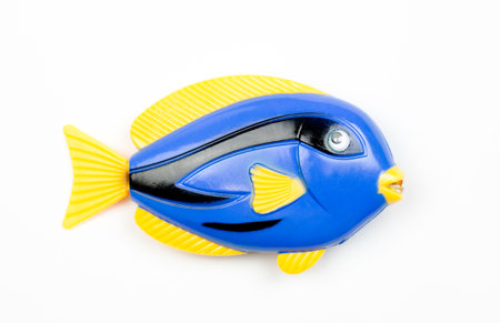 Toy plastic blue fish on white background