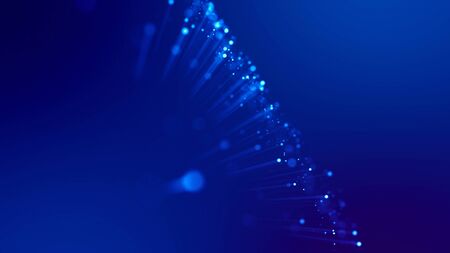 3d rendering of abstract blue background with glowing particles like micro world science fiction with depth of field and bokeh. Blue light rays like laser show for bright festive presentation