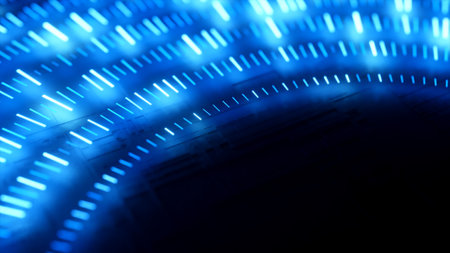 bunch of optical fibres flying from deep as blurred abstract technology background