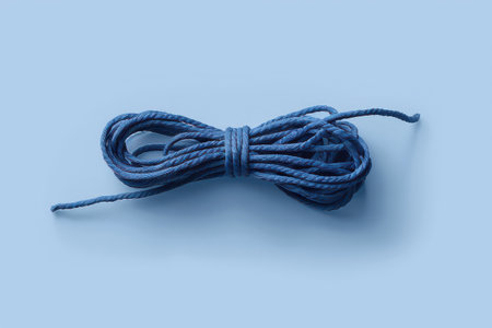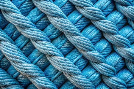 The rope is made of blue and white threads, and it is twisted and knotted. The rope is tightly woven, and it has a unique texture that is both rough and smooth