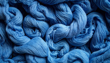 Closeup of Blue Fibers in Abstract Artistic Background with Soft Textures.
