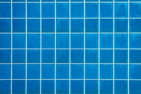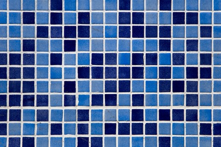 Blue mosaic tile wall texture background. Abstract colorful ceramic tile wall.