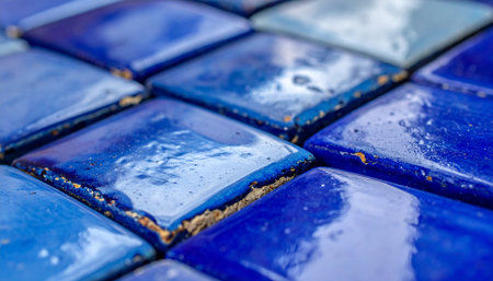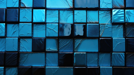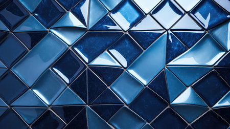 A vibrant close-up of a mosaic tile pattern in various blue shades, showcasing artistic design with light and shadow interplay. Ideal for interior decor inspirations.