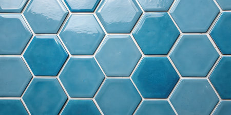 Abstract background of blue hexagonal tiles with varying shades and textures
