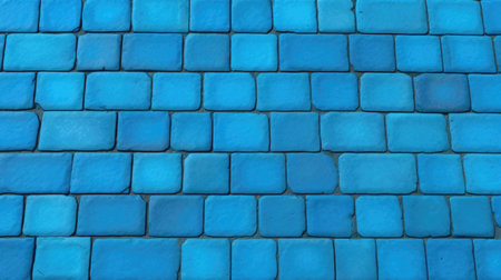 A close-up of a wall featuring various shades of blue rectangular tiles, creating a textured and gradient effect across the surface.