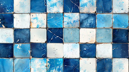 blue and white tiled squares background stock photo featuring a texture-rich surface reminiscent of marble. this high-quality photo showcases the beauty of mundane materials, such as recycled material murals, and living materials. the indigo hues add a touch of elegance to this captivating image. ai generated