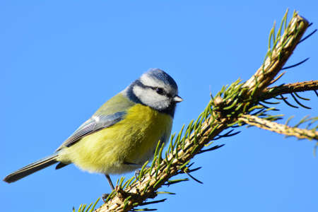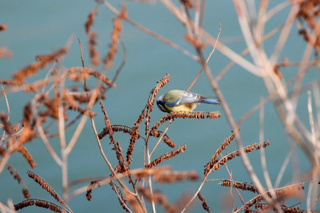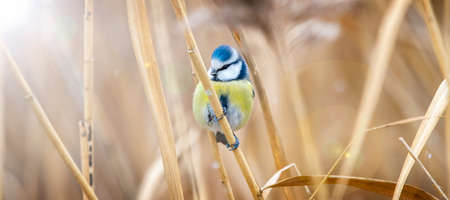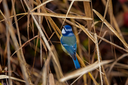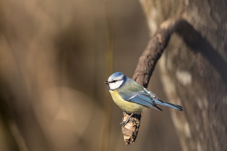 The Eurasian blue tit Cyanistes caeruleus in the wild.