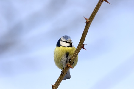Norway, 2010: Blue tit bird sitting in the tree a cold winter day