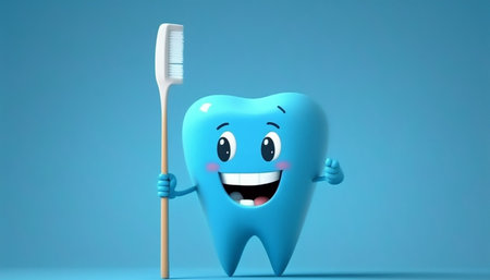 Cute happy smiling tooth with toothbrush