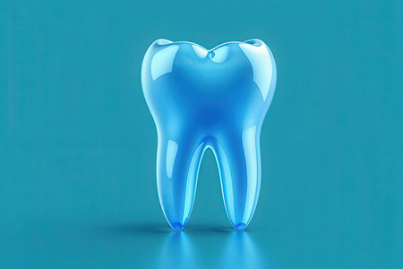 Abstract glass sculpture of a tooth in blue hues, perfect for dental, artistic, and conceptual design themes.