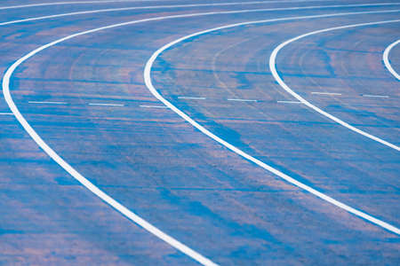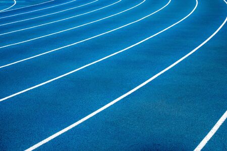 background of blue track for running competition at stadium, focus on center.