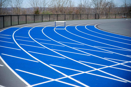 Athletics Running Track with Blue Surface and White Lane Lines Designed for Competitive Use