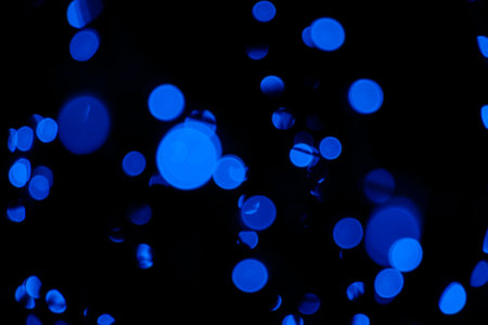 Blue bokeh abstract on black background, lights