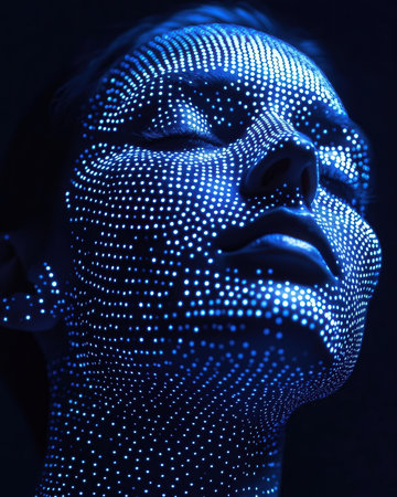Mannequin head with glowing dots. 3D rendering. Futuristic background.