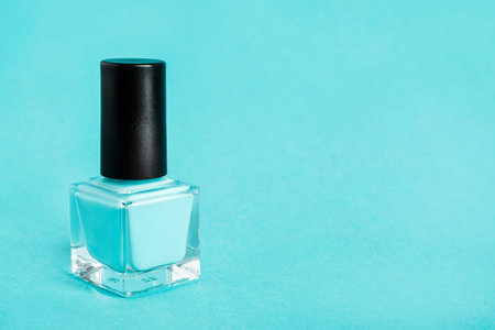 Cosmetic makeup bottle, nail polish or manicure design in blue