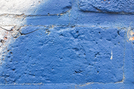 Grunge blue paint brick wall texture. Urban abstract blocks pattern as backdrop for graphic design.