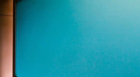 Tinted turquoise construction background. The wall of the house is made of concrete blocks. The seams between them form a pattern similar to brickwork. Light wallpaper or backdrop