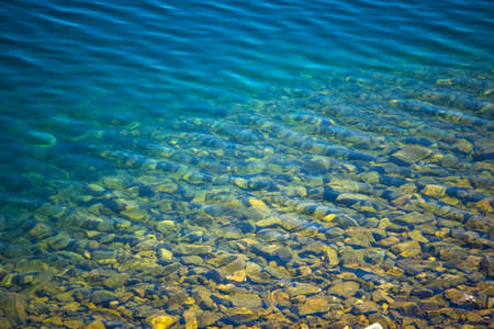 Amazing textured background of calm azure clean water surface. Sunshine in mountain lake close up. Beautiful ripples on shiny water in sunny day. Wonderful relax texture.