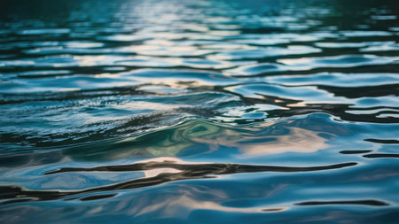 This image captures the tranquility of a calm water surface, featuring gentle ripples and reflections of the sky at dawn, perfect for evoking peace and serenity.