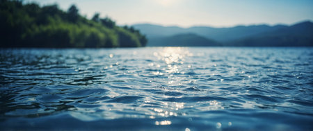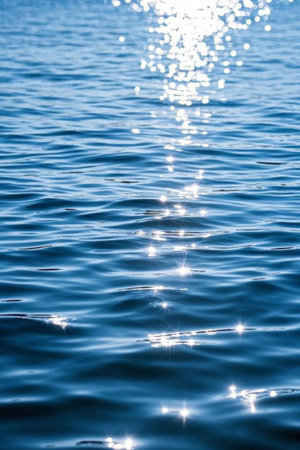 Blue water surface sun reflecting scene