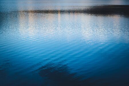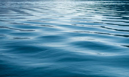 Blue water surface with ripples, abstract nature background, selective focus