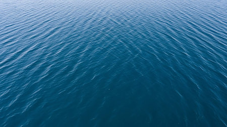 A serene view of calm ocean water surface with gentle ripples and vibrant blue tones.