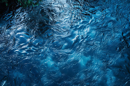 Blue water surface with ripples and waves close-up macro photography