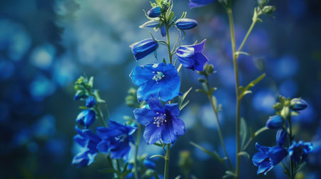 Beautiful blue delphinium flowers blooming in a lush garden during springtime, capturing the essence of natures vibrant palette