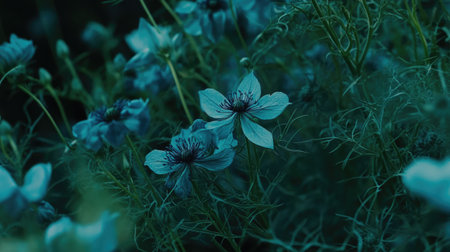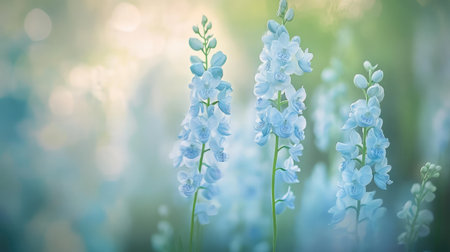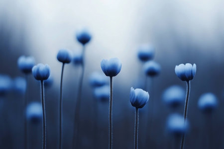 Close up of delicate blue flowers in a serene, misty background, capturing the essence of tranquility and nature s beauty Ideal for wellness and nature inspiration