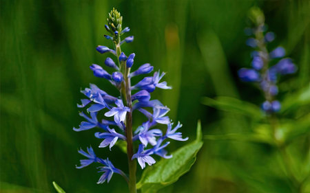 Blue flowers on a green background. Shallow depth of field.