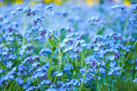 Blue forget me not flowers, spring flowering season. Floral background