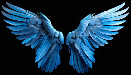 close blue angel wings illustration up delicate, detailed patterns, feathers iridescent close blue angel wings