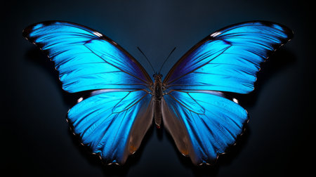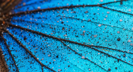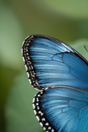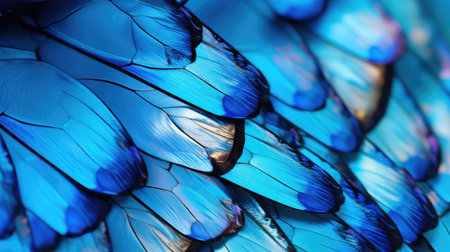 A macro shot capturing the exquisite detail and vibrant colors of a blue butterfly's wings.
