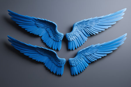 Blue wings on a white background. 3d rendering, 3d illustration.