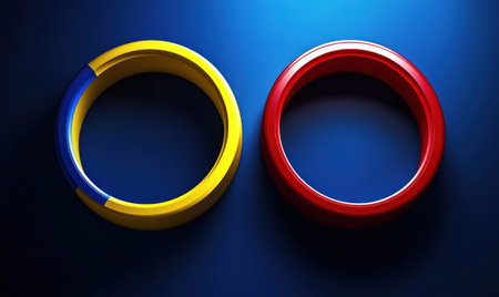 Abstract background with two colorful circles in blue, yellow, and red colors, simple shapes, simple minimalistic style, high resolution, high quality, high detail, best of Behance, Dribbble, in the style of Behindental, modern. --ar 5:3 --v 6.1 Job ID: dc509826-81a8-47b9-b951-3a1e13ea1cbe